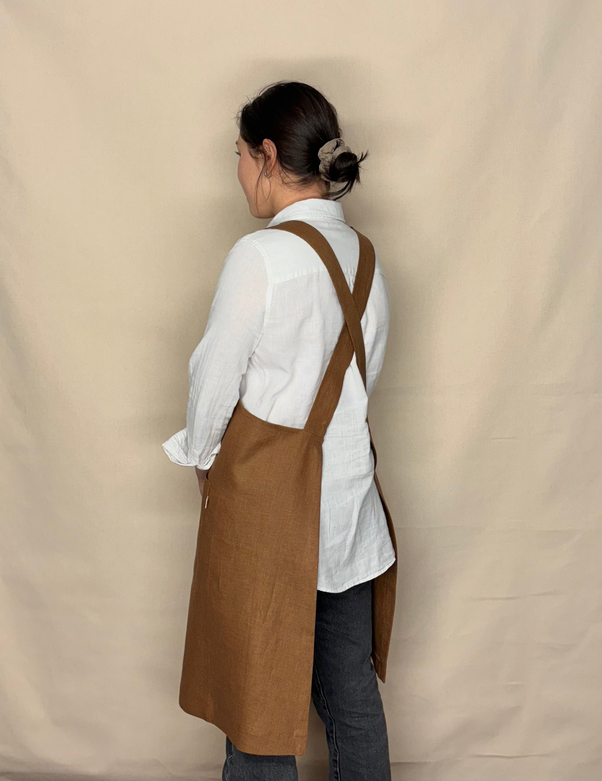 The 'Forest Green Japanese Apron' is made of 100% linen material, please expect slight shrinking and mild wrinkling.
