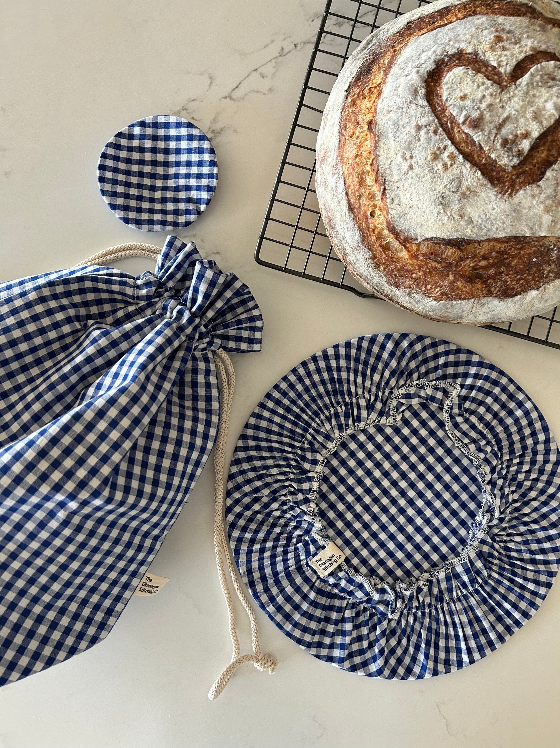 For the sourdough maker: this set includes one small jar cover that fits perfectly on your sough dough starter, one large bowl cover for your bowl or banneton to use while proofing your dough, and one beeswax-lined bread bag in the sourdough size to store your finished bread.