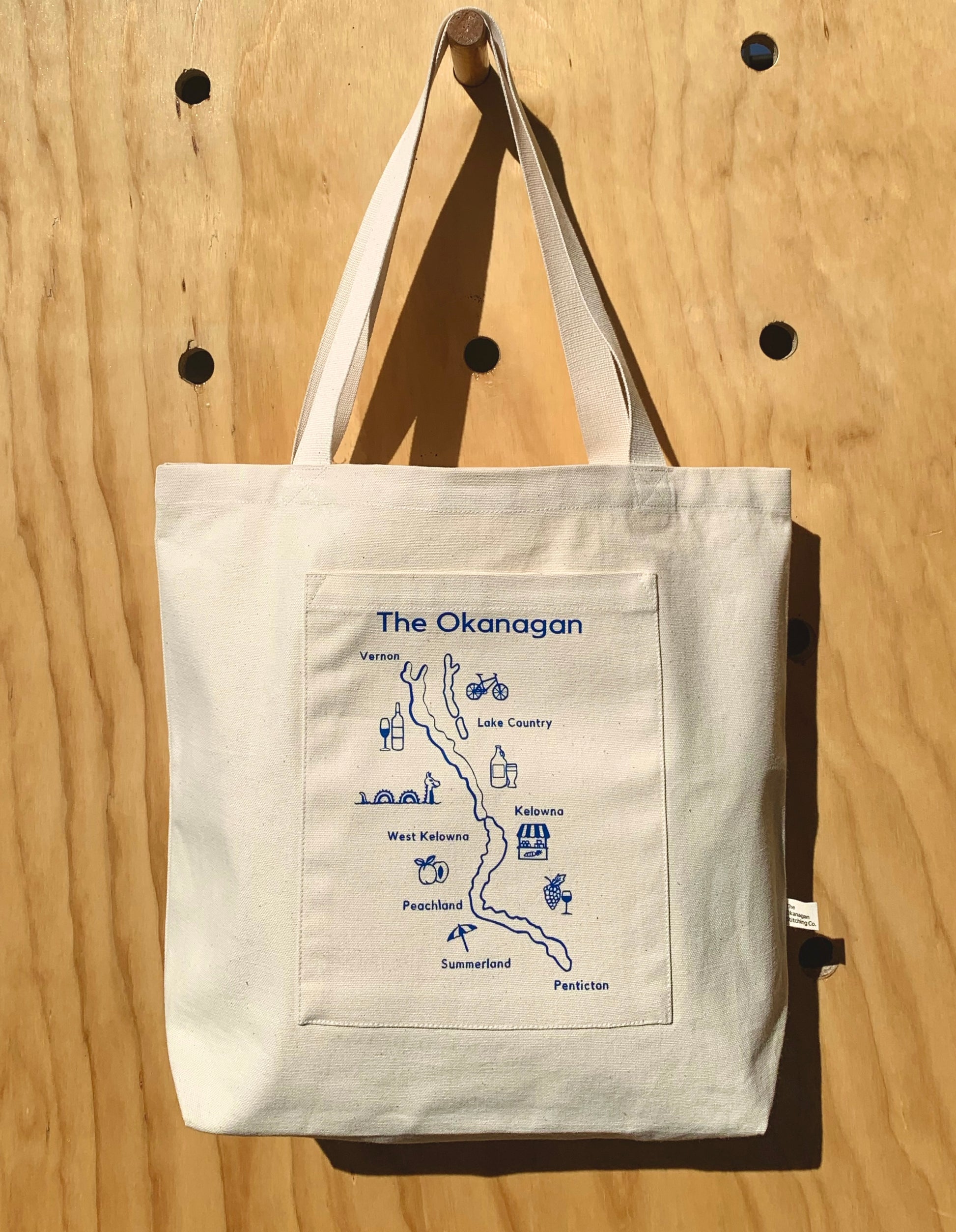 The Okanagan Tote is a celebration of the beautiful place we are lucky enough to call home. My husband and daughter created the artwork on this bag, they chose to depict just a couple of elements that to them represent the Okanagan. This bag is perfect for our local friends, those visiting and wanting a memento of their trip, or as a gift to send to a loved one who is no longer in the Okanagan but could use a little reminder of home!